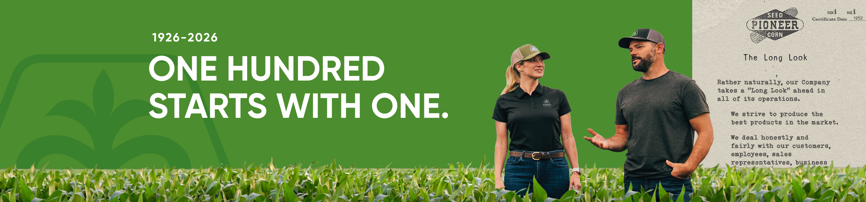Celebrate our 100-year anniversary with us in a big way! When you plant your seed corn in 2026, check to see if yours is treated GOLD – you might be one of the lucky winners* who will participate in a once-in-a-lifetime immersive seed journey experience, including stops at our largest R&D facility in Johnston, Iowa, and seed operations in Hawaii in January 2027. If you are a winner, contact your local Pioneer Sales Representative.