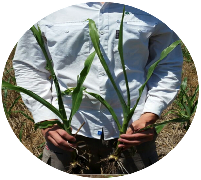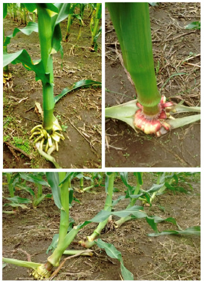 Foto 2. Daños en raíces nodales en maíz. Gentileza de Departamento de Desarrollo de Semillas Corteva