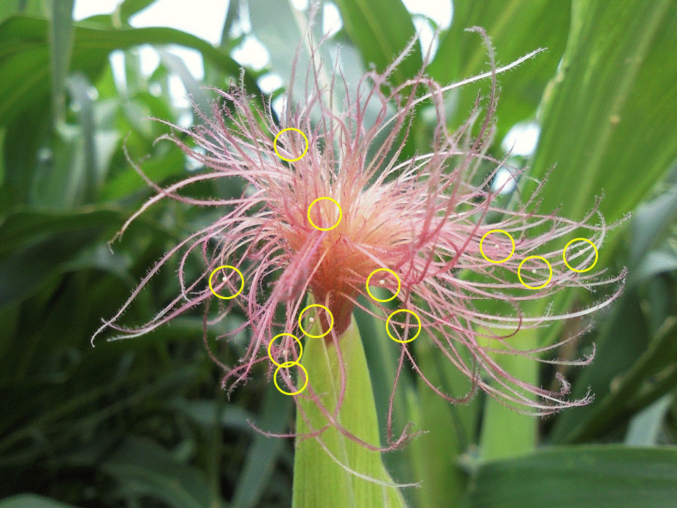 Foto 5.. Huevos de Helicoverpa zea sobre estigmas. Fuente: Pioneer Arg.
