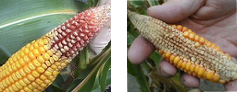 Todos los granos se adhieren a la mazorca (Figura 6) y compiten por el agua y los nutrientes disponibles. Sólo viven aquellos granos que reciben abundante humedad y nutrientes.