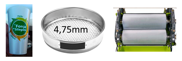 Para máquinas com processador de grãos (rolos cracker), a distância ideal entre os rolos deve ser de 1 a 2 mm, garantindo o processamento de pelo menos 95% dos grãos, ou seja, com menos de 5% de grãos inteiros, conforme indicado pelo teste do copo de 1 litro ou pela peneira de 4,75 mm.
