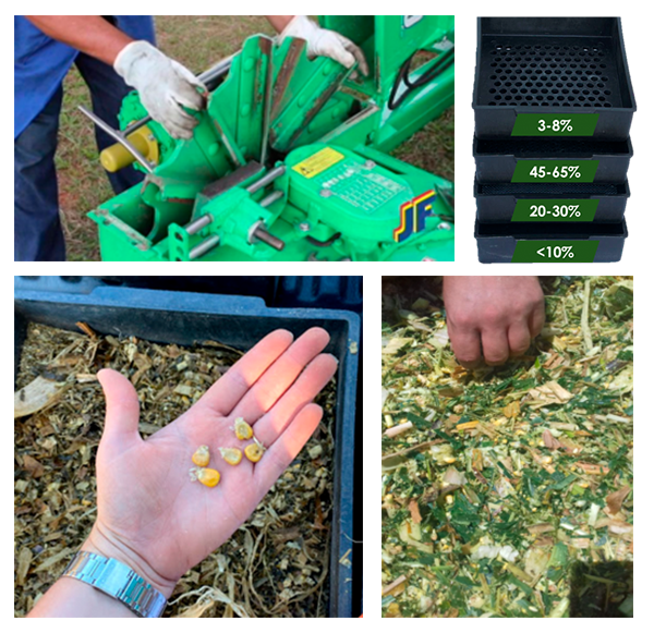 Além disso, pode-se utilizar um conjunto de quatro peneiras Penn State, com aberturas (diâmetro) de 19 mm, 8 mm, 4 mm e fundo, para avaliar a uniformidade das partículas. Este procedimento é essencial para promover uma boa saúde ruminal e animal, além de reduzir perdas de cocho, evitar problemas fisiológicos e melhorar a qualidade do leite.