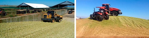 • Evite o descarregamento em cima do silo, pois isso pode contaminar a silagem com terra, bactérias e fungos indesejáveis. Faça o descarregamento na base e utilize apenas o trator com lâmina para espalhar e compactar o material sob o silo.