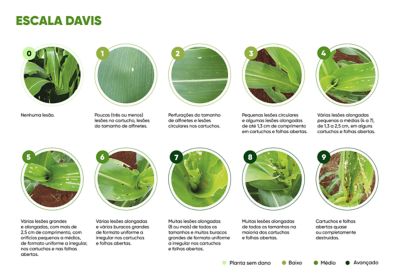 O uso da Escala Davis auxilia na tomada de decisão quanto à necessidade de controle químico (Imagem 3). Ela é uma ferramenta utilizada para avaliar a severidade de ataques de pragas em plantas. A escala é importante no manejo integrado de pragas, pois permite um monitoramento mais preciso e ajuda a evitar aplicações desnecessárias de defensivos agrícolas, reduzindo custos e impactos ambientais.