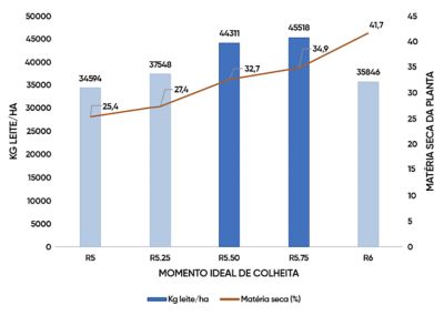 Portanto, recomenda-se que a colheita seja realizada dentro da janela ideal de 32% a 38% de matéria seca, a fim de maximizar o rendimento de matéria seca e assegurar a melhor qualidade bromatológica, garantindo condições adequadas das plantas para o processo de ensilagem.