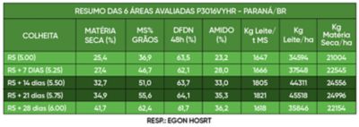 Nesta faixa, obteve-se os maiores rendimentos de matéria seca/ha, kg de leite/ha e kg de leite/t MS, bem como, os melhores índices bromatológicos, evidenciando sua máxima qualidade dentro desta janela ideal (Imagem 1 e Tabela 1).