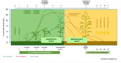 O potássio e o nitrogênio são os nutrientes mais acumulados pela parte aérea do milho, mas o potássio apresenta a maior proporção de acúmulo nos estádios iniciais, em relação ao total acumulado. Karlen et al. (1987) verificaram que as plantas de milho acumularam, até o florescimento, 60% do total de nitrogênio, 46% do fósforo e 80% do potássio necessários durante todo o ciclo. Resultados semelhantes foram obtidos recentemente por Bender et al. (2013).