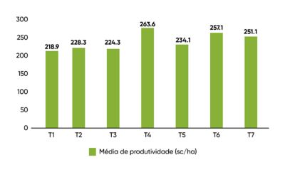 Já no cenário de alto investimento, aumentada em 25% a dose de K2O, houve um incremento de 16,5% na produtividade, na relação 1:1,25, comparada com o padrão produtor. Quando elevada a relação para 1,25:1,5, ganhou-se 32,7% de rendimento em relação ao padrão produtor.