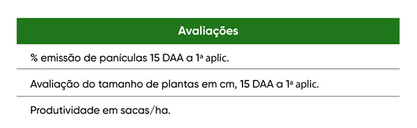 Observou-se 15 dias após a primeira aplicação, que o tratamento-2 (Magnésio foliar no estádio V7-V8), adiantou a emissão de panícula em 11% a mais quando comparado à testemunha.