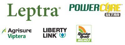 POWERCORE® é uma tecnologia desenvolvida pela Corteva Agriscience LLC e Monsanto. POWERCORE® é uma marca registrada do Grupo Bayer. Agrisure Viptera® é marca registrada da Syngenta Group Company. A tecnologia Agrisure® incorporada nessas sementes é comercializada sob licença da Syngenta Crop Protection AG. LibertyLink® e o logotipo da gota de água são marcas registradas da BASF. Roundup Ready® é marca registrada do Grupo Bayer.