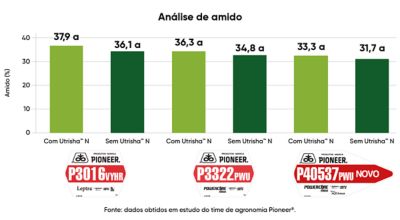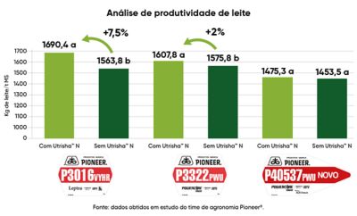 Para entender, em adicional, os benefícios do uso de Utrisha™ N na produção de milho destinado à silagem, o time de agronomia Pioneer® desenvolveu um estudo de campo, analisando resultados de porcentagem de amido, Matéria Seca (MS) por hectare e quilo de leite por tonelada de matéria seca.