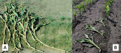 Deslocamento de raízes e green snap são eventos que acometem lavouras de milho e podem causar grandes prejuízos, tendo em vista que comprometem diretamente o desenvolvimento normal da planta. Estes eventos são causados por uma miríade de fatores, como efeitos climáticos, condições de solo, nutrição e estágio de desenvolvimento da planta.