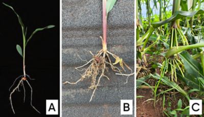 A planta de milho tem três estágios de desenvolvimento de raízes durante seu ciclo de vida: