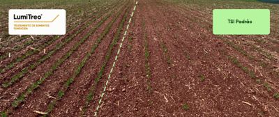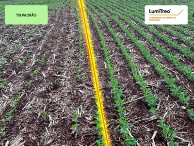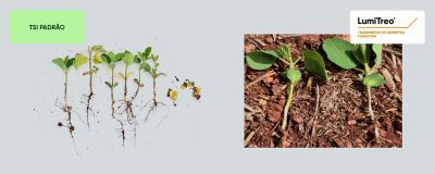 O ensaio foi instalado em ambiente com alta pressão de patógenos fúngicos, por se tratar de uma área sob condição de replantio. O tratamento com LumiTreo® demonstrou excelente eficiência, proporcionando maior proteção, o que resultou em menor perda de estande e, consequentemente, maior produtividade em comparação ao TSI padrão (Imagem 1).