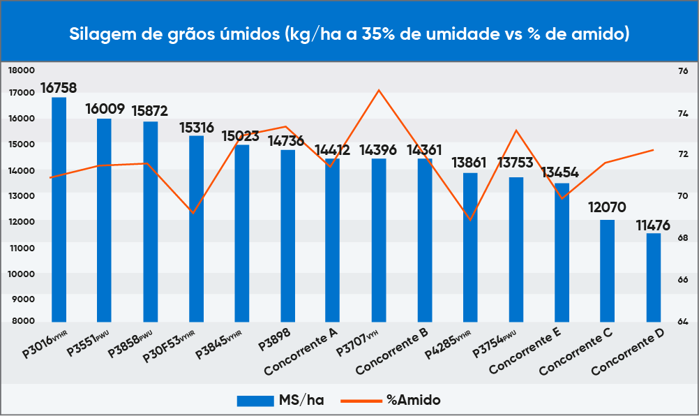 Para silagens de 80 a 100 cm, snaplage e grãos úmidos, os destaques de alto rendimento e qualidade foram para os híbridos: