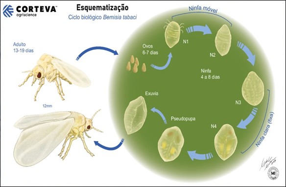 Figura 2 – Ciclo de vida da mosca-branca | Fonte: Corteva Agriscience.