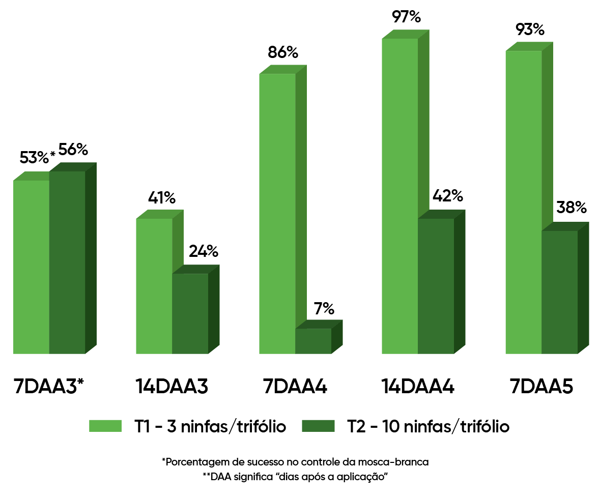 Os dados acima citados mostram que, além do uso de um inseticida eficiente, é necessário se atentar aos demais fatores envolvidos na aplicação para que, assim, possa ser feito um manejo seguro e eficiente de mosca-branca.