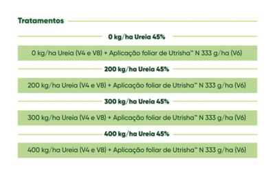 A aplicação foliar de Utrisha™ N contribuiu como complemento no fornecimento de nitrogênio por meio da fixação foliar em todos os tratamentos com ureia 45%.