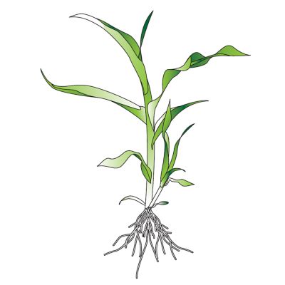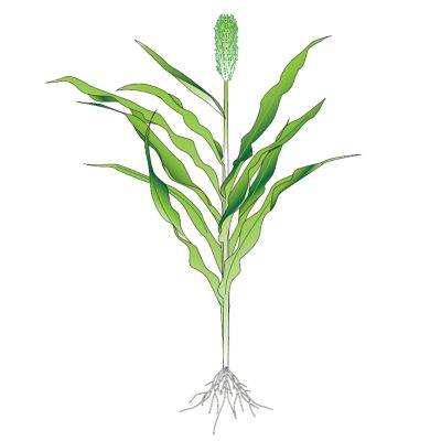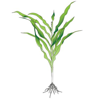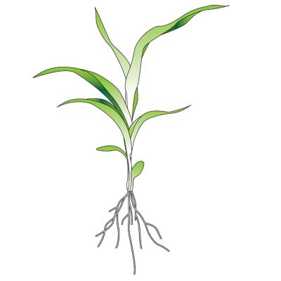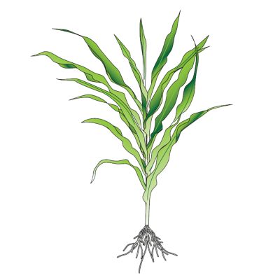 O número potencial de folhas é definido 30 a 40 dias após emergência, o ponto de crescimento está acima da superfície do solo e muda da produção de folhas para a formação da panícula. A planta atinge seu máximo potencial de crescimento e absorção de nutrientes.