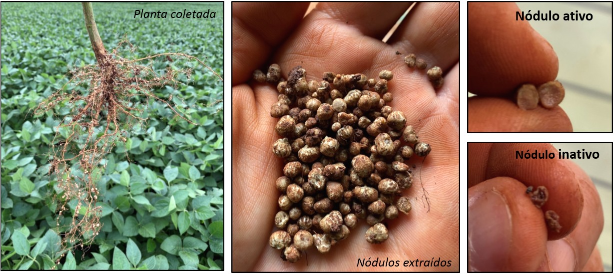 O TSI Soja Completa apresentou plantas com maior número de nódulos e peso dos nódulos, o que mostra a contribuição do novo tratamento à maior atividade biológica das bactérias e, consequentemente, maior fixação de Nitrogênio. Tambem notou-se maior porcentagem de nódulos em atividade (túrgidos e coloração rosada) quando comparado aos demais tratamentos.