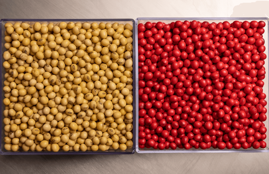 Imagem 2: Comparativo de sementes de soja branca e sementes com o TSI Soja Completa da Pioneer