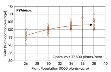 - The optimum plant population for P9466AML was 37,500 plants/acre (Figure 5).