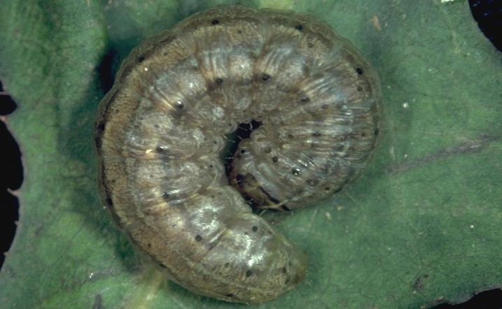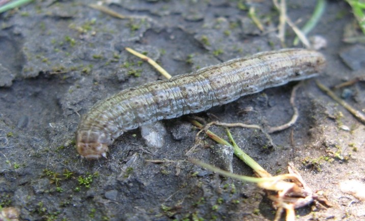 Identification: Mature larvae are pale grey to greenish grey in colour; head is yellowish-brown.