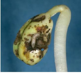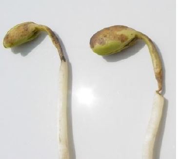 Soybean seedlings with damping off symptoms due to Pythium seedling blight.