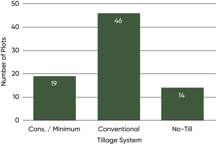 Figure 3. Tillage practices used in Eastern Canada Pioneer on-farm trials with entries exceeding 75 bu/acre, 2013-2020.