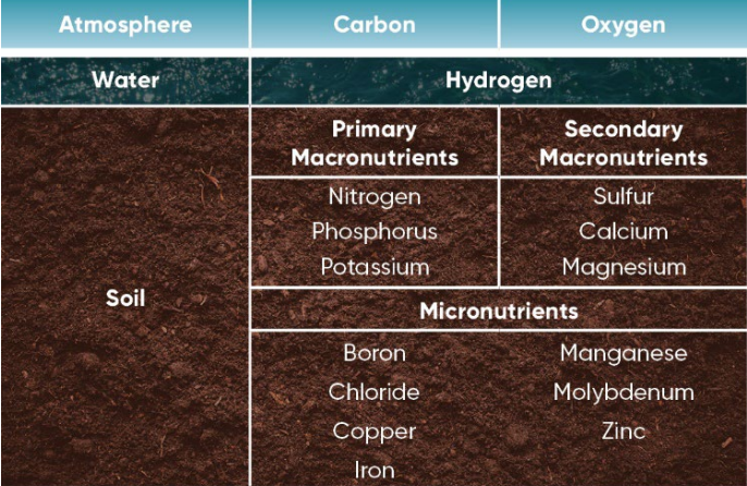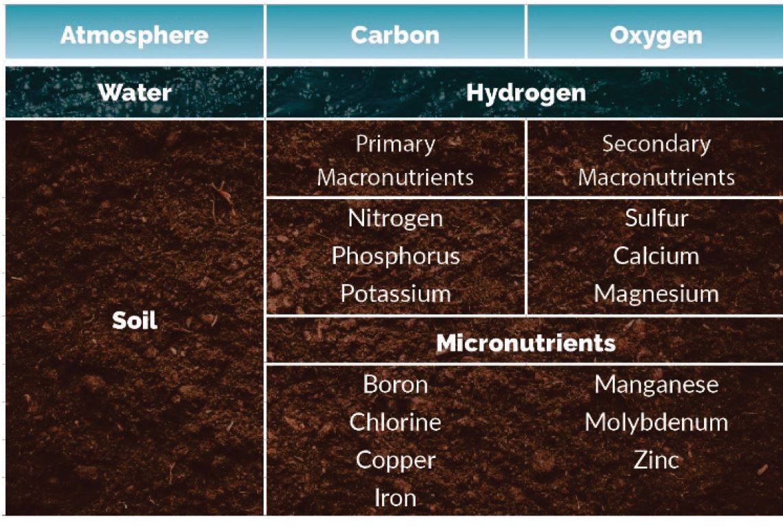 Figure 1. Sources of the sixteen nutrients essential for crop production.