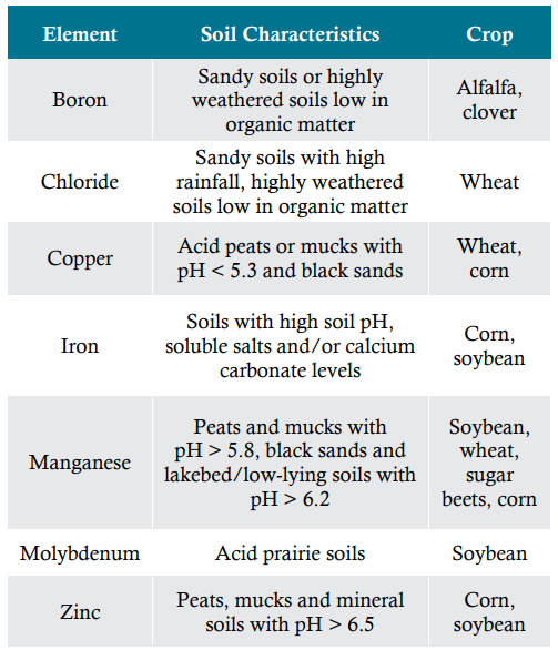 Micronutrient deficiencies tend to appear with much greater frequency on specific soil types and in certain crops (Table 4).