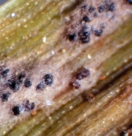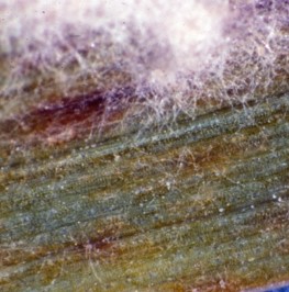 Mycelium and overwintering structures of Blumeria graminis. Photo courtesy of Department of Plant Pathology, North Carolina State University, Bugwood.org