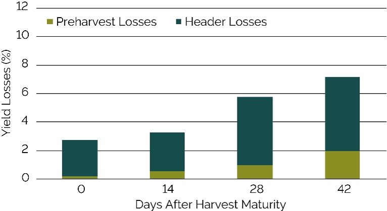 - A University of Wisconsin study showed that yield losses can increase when harvest is delayed more than two weeks after harvest maturity (Figure 3).