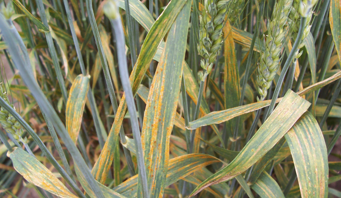 Puccinia striiformis infection of wheat. Photo courtesy of Sam Tragesser, Senior Research Associate.