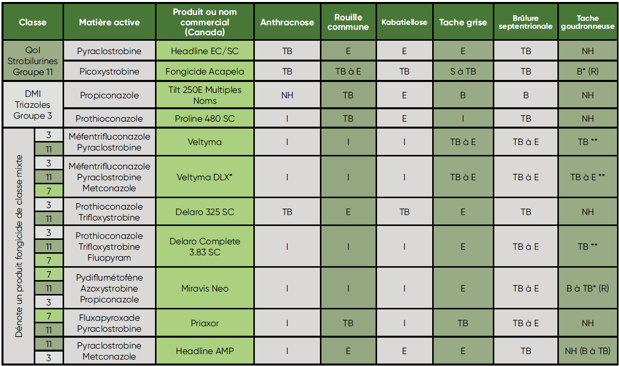 Les fongicides doivent être appliqués avant ou aux premiers stades de l’infection par la maladie. Ils peuvent prévenir l’infection pendant 2 à 3 semaines après l’application. Par conséquent, les fongicides doivent être appliqués lorsque le risque d’infection est élevé.