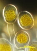 Les urédospores asexuées de Puccinia triticina. Photo gracieuseté de Bruce Watt, Univ. du Maine, Bugwood.org