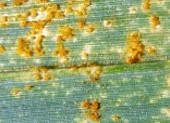 Rouille des feuilles sur du seigle. Photo gracieuseté de University of Georgia Plant Pathology, University of Georgia, Bugwood.org
