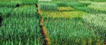 Parcelles de blé avec différents niveaux de résistance à la rouille des feuilles. Photo gracieuseté de Donald Groth, Louisiana State University AgCenter, Bugwood.org
