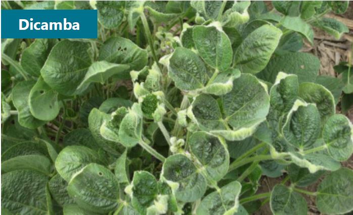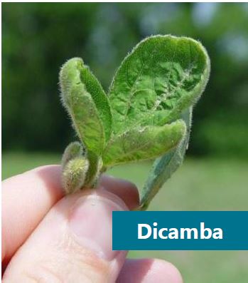 Gonsolus, J. 2018. Symptoms of Dicamba Exposure in Soybean. University of Minnesota Extension. https://extension.umn.edu/herbicides/symptoms-dicamba-exposure-soybean#postemergence-applications-of-soil-residual-herbicides-1037961