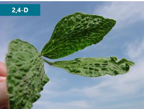 Zimmer, M., C. Hayden, F. Whitford, B. Young, and W. Johnson. 2019. Differentiating 2,4-D and Dicamba Injury on Soybeans. WS-56/PPP-126. Purdue University Extension. https://ag.purdue.edu/btny/purdueweedscience/wp-content/uploads/2021/01/WS-56.pdf