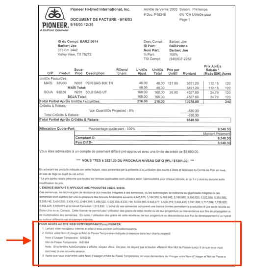 - Facture de Pioneer : Votre nom d’usager et votre mot de passe figurent sur votre facture
