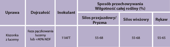 Optymalne zakresy wilgotności kiszonek z lucerny traktowanych 11AFT marki Pioneer®