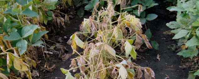 Figure 11. Soybean plants wilted due to Phytophthora rot.