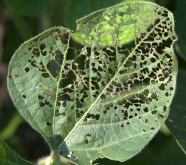 Figure 16. Aphid feeding on soybean leaf.