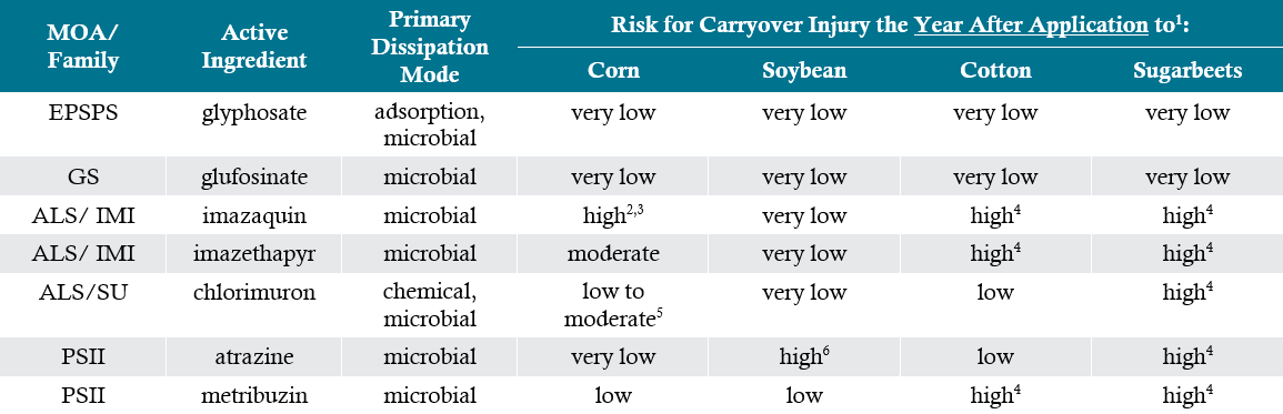 Temperature and rainfall have a large effect on herbicide persistence and the potential for carryover injury. Weather patterns that favor microbial activity (warm, moist conditions) increase degradation and lessen carryover potential (Figure 1). Temperature can also influence chemical processes, with warmer conditions favoring degradation.