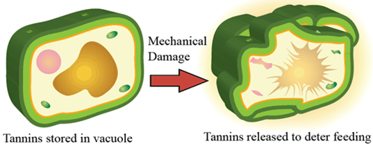 Tannins are a class of polyphenolic molecules with a diverse range of biochemical functions, including protection against pathogens. Tannins are stored in vacuoles and released when cells are damaged to protect the plant. Tannins are commonly found in roots tissues to protect plants from soil-borne pathogens.