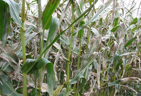 Necrotrophs kill host tissue and feed off of the dead tissue. They accomplish this by quickly overwhelming the plant with toxic compounds and tissue-degrading enzymes before the host plant is able to react and initiate defenses. Examples of necrotrophic pathogens in corn include gray leaf spot (Cercospora zeae-maydis), and southern leaf blight (Cochliobolus heterostrophus).
