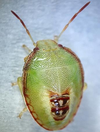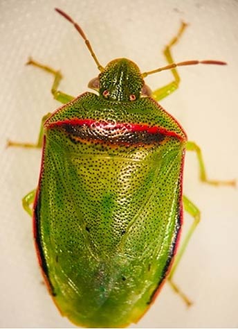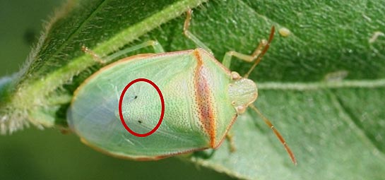 - On adults, two small black dots on the back of the redbanded stink bug can be a good identifying characteristic.