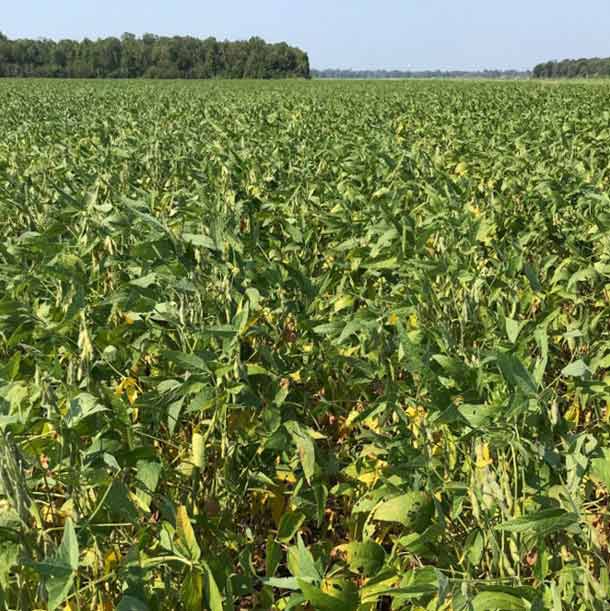 Photo - Soybeans at growth stage R6 - full seed stage.