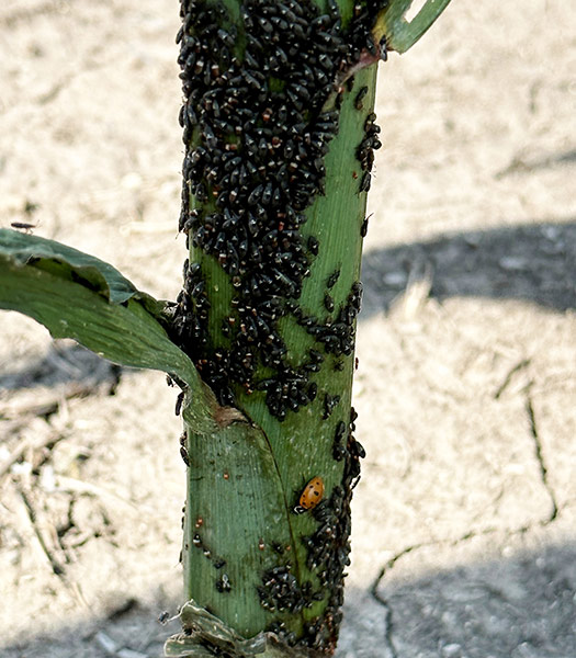 • In later-planted corn and sorghum that is smaller at the time of migration, plants may be completely killed.
